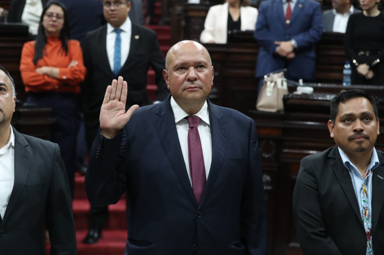 Orlando Blanco al ser juramentado como secretario de la actual directiva, acompañado de sus compañeros de bancada. (Foto Prensa Libre: Esbin Garcia)