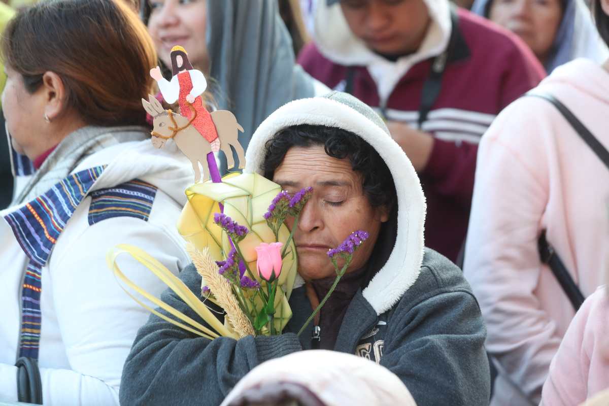 Fieles sostuvieron sus palmas en alto y elevaron sus oraciones durante el Domingo de Ramos 2025. En esta fecha concluye la Cuaresma y comienza la Semana Santa. (Foto Prensa Libre: Byron Rivera Baiza)​